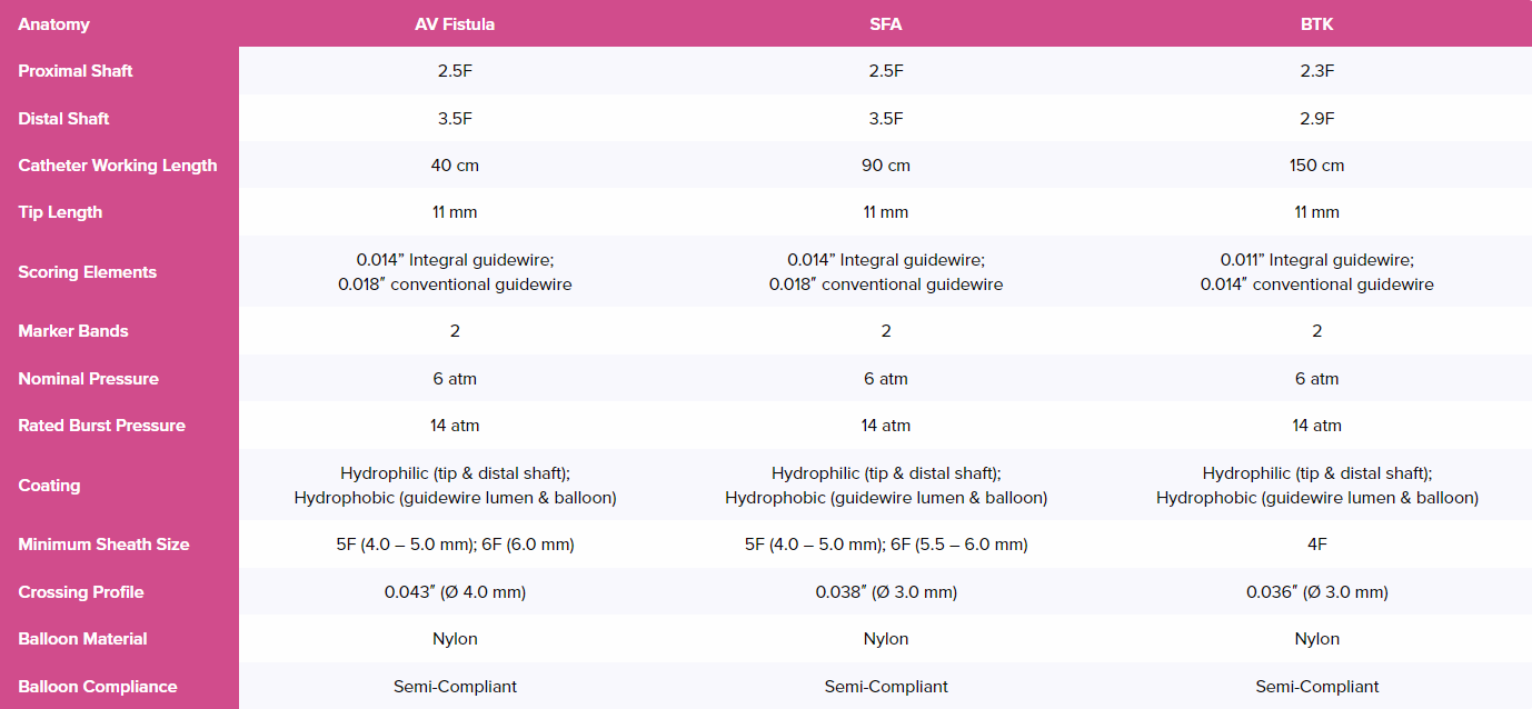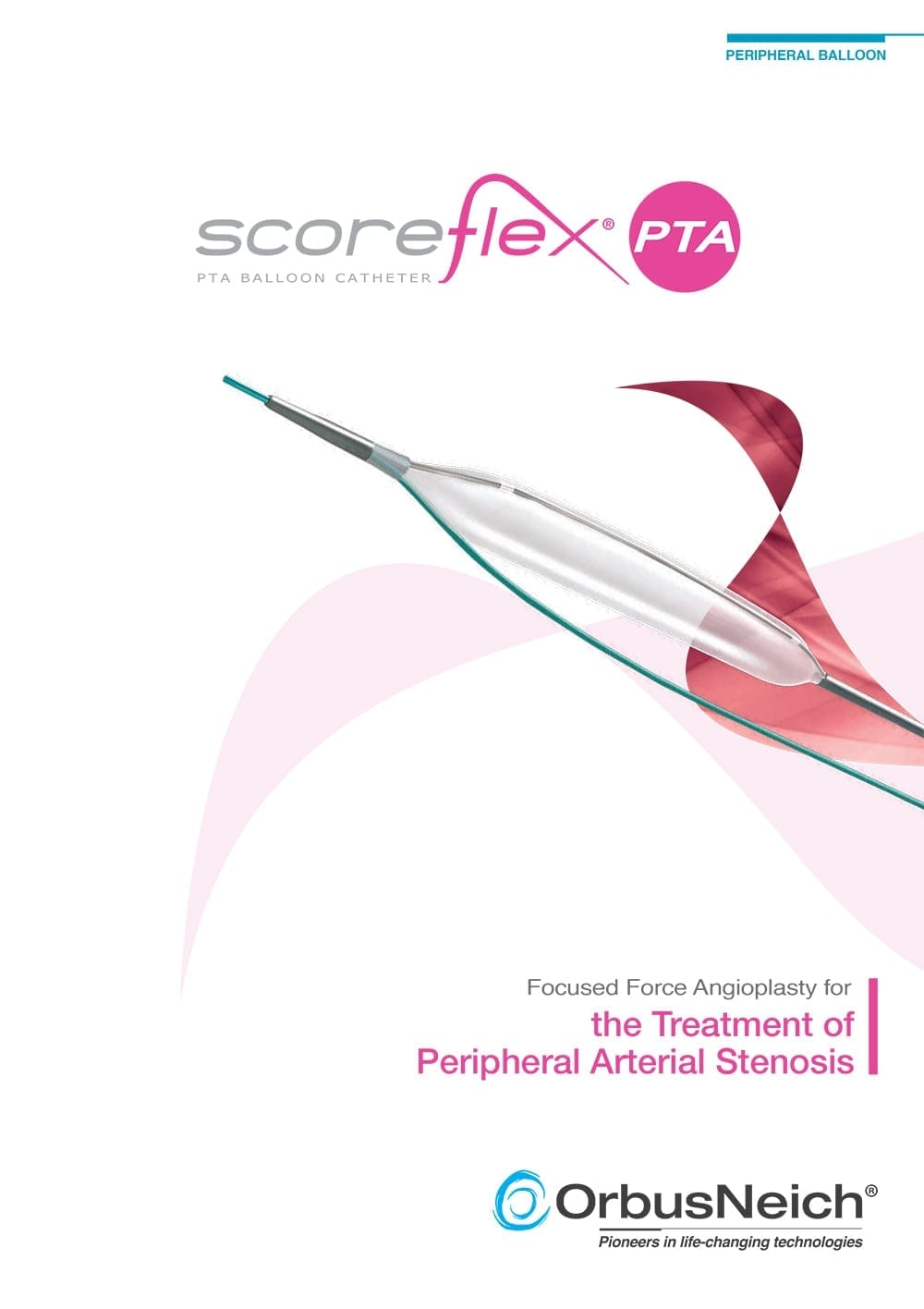 Scoreflex PTA is a focused force dilatation balloon with a dual-wire system which creates a focal stress pattern to facilitate safe and controlled plaque modification at lower resolution pressure.